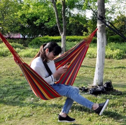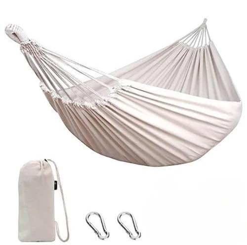 Double Cotton Hammock! Soft, Breathable, and Easy to CarryPerfect for Relaxing by The Water, at The Park, or in Your Backyard Indoors or Outdoors! Large Size! 2 Carabiners Included for Safety :