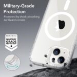 • MagSafe-Compatible Charging: 36 built-in magnets provide auto alignment and a secure lock with any HaloLock or MagSafe accessories for faster and easier charging.• Total Protection: rigorously tested to ensure total drop protection on all sides; Air-Guard corners absorb shock so your phone doesnt have to.• Screen and Camera Protection: raised screen edges and Camera Guard lens frame provide enhanced scratch protection where it counts the most.• Crystal Clear: scratch-resistant acrylic back lets you show off your iPhone 13s original look with stunning clarity that lasts.• Compatibility: only compatible with the iPhone 13; precisely aligned cutouts for speakers and ports and easy-press button covers keep your phone easy to use.Complete Customer Support: detailed setup videos and FAQs, comprehensive 12-month warranty, lifetime support, and personalized help.